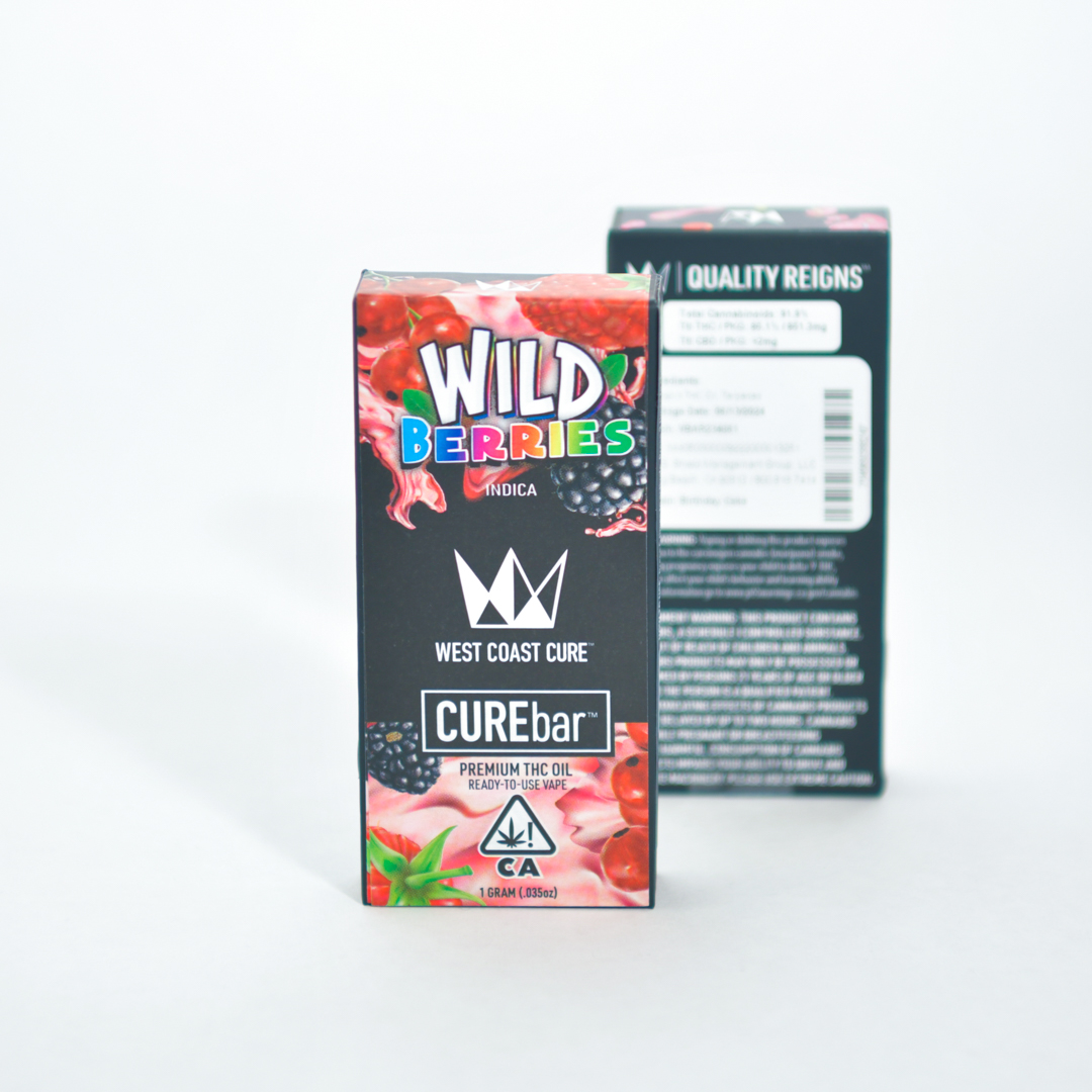 Wild Berries Ready-To-Use CUREbar by West Coast Cure, embark on a sensory adventure with this unique blend of botanical bliss. Meticulously crafted for an elevated journey, these 1-gram cartridges combine the fruity allure of ripe berries with the therapeutic benefits of cannabis. Each pull from this 510-cart unveils a carefully curated collaboration of terpenes, providing a gentle, uplifting experience.